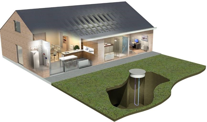 - Geotermální tepelné čerpadlo využívající energii ze země